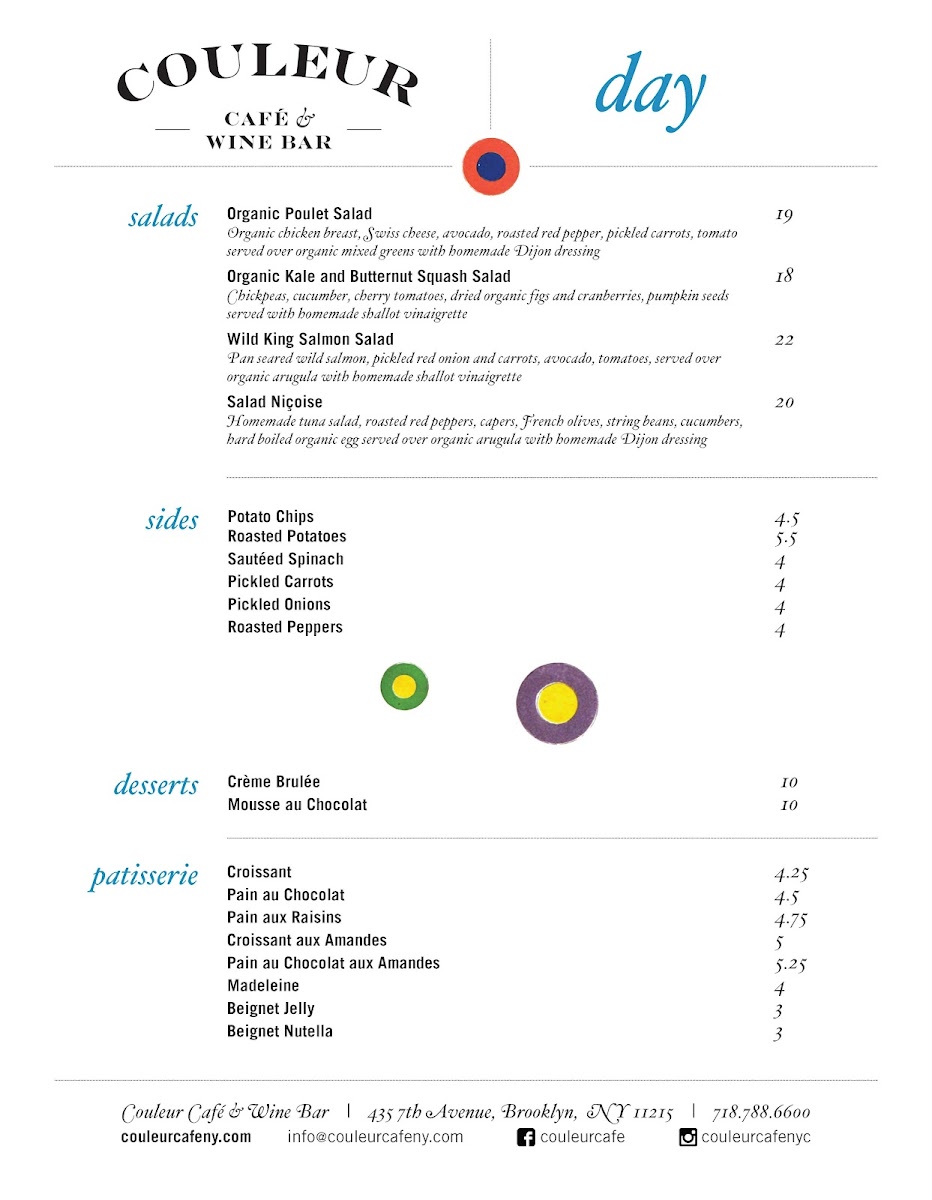 Desserts such as the Crème Brûlée and Mousse au Chocolat offer a sweet finish to your meal, echoing positive reviews from delighted customers. With warm croissants baked fresh each morning and a menu that celebrates both heartiness and health, Couleur Café stands as a testament to culinary craftsmanship and community spirit. Enjoy a friendly ambiance that invites gatherings, perfect for any time of day.