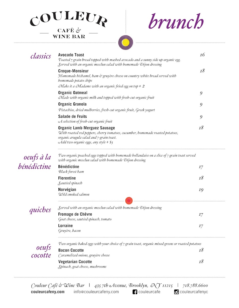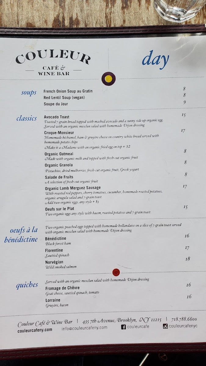 Discover the delightful offerings at Couleur Café, a cozy cafe nestled in the heart of Brooklyn. Known for its curated menu, Couleur Café shines with dishes that evoke classic French flavors while embracing comfort. Start your day with their French Onion Soup au Gratin or dive into the Red Lentil Soup for a vegan option. The brunch menu is a must-try, featuring sweet crêpes that tantalize the palate with flavors like homemade berry compote or Nutella and bananas.